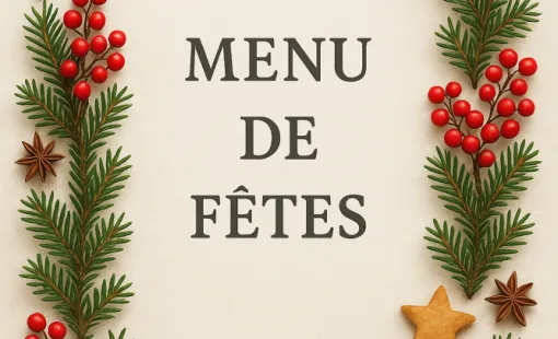 Sur réservation à partir du lundi 1 décembre 2025   MENU DE FÊTES   Royal de saumon fumé maison, crème au vinaigre de calamansi   Ou   Millefeuille de...